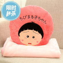 正版樱桃小丸子可爱卡通抱枕两用空调毯靠垫毯子办公室汽车午休毯