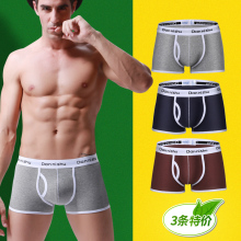 3条装丹尼舒男士内裤男平角裤大码纯色棉性感透气四角内裤男中腰