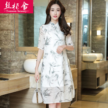 旗袍连衣裙女夏2017新款改良中长丝柏舍短袖修身显瘦中裙S62A0308