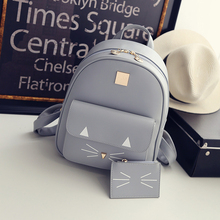 2016新款冬季韩版双肩包女pu可爱卡通小猫咪学院风背包子母包书包