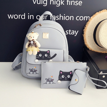 2016新款韩版双肩包女士子母包可爱卡通小猫咪背包学院风休闲书包