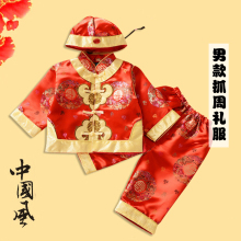 春秋装儿童抓周服古典唐装男宝宝一周岁抓周礼服长袖宝宝抓周礼服