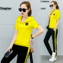 时尚运动套装女装学生短袖长裤两件套2017夏季休闲跑步运动服显瘦