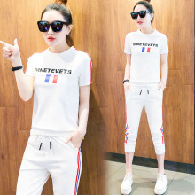 时尚运动套装女装夏天短袖七分裤两件套休闲运动服2017夏装韩版潮