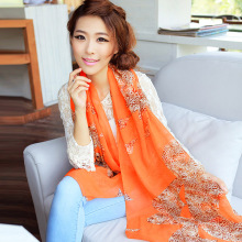 瑞格丽特 秋冬新女文艺清新提花丝巾透气舒适大规格围巾 草木如烟