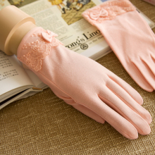 春夏女士薄款蕾丝蝴蝶结开车防滑防紫外线分指短款防晒手套