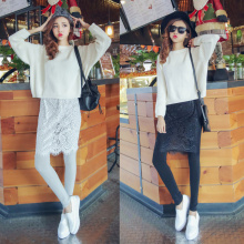 蕾丝包裙假两件打底裤裙2017春夏韩版女生显瘦弹力紧身九分裤薄款
