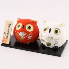 红白猫头鹰夫妇陶瓷摆件摆设 新婚房车饰装代表幸福饰品 日本进口