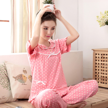 樱丝芳韩国公主睡衣女夏季圆点短袖长裤纯棉质休闲可爱家居服套装