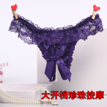 大开档性感内裤珍珠按摩短裤自慰诱惑女士大码低腰免脱T裤丁字裤