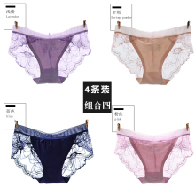 4条装性感三角内裤女情趣蕾丝诱惑火辣透明大码低腰棉档无痕冰丝