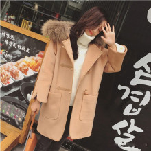 冬新款呢大衣宽松大码女韩版牛角扣学生中长款春秋季修身毛呢外套