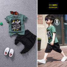 米虫童装 2017夏季儿童韩版短袖T恤+短裤二件套 男女宝宝运动套装