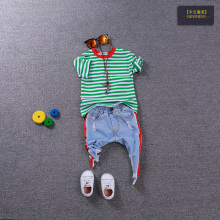 6.1包邮童装17夏新款儿童条纹T+短裤二件套男童韩版潮范运动套装