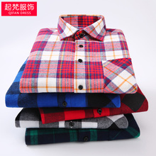 曼卡绒纯棉格子衬衫男长袖修身韩版青年休闲磨毛衬衣男装外套寸衣