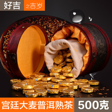 云南茶叶普洱茶熟茶大麦宫廷小玉饼 好吉吉岁小沱茶500克送皮桶