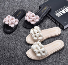 2017夏季拖鞋新款女拖鞋平底一字拖花朵凉拖鞋女休闲外穿沙滩鞋子