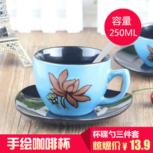 义旺 新款创意手绘咖啡杯套装中式陶瓷杯简约奶茶杯茶水杯配碟