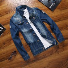 2016新款春秋季男士牛仔外套复古破洞潮流学生牛仔褂工装夹克上衣