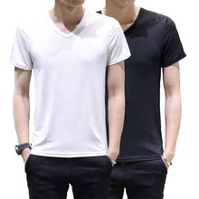 9.9包邮短袖t恤男大码V领纯色日系潮牌韩版半截袖夏季半袖上衣服