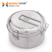 不锈钢饭盒便当盒2层分格学生成人快餐杯圆形食堂打饭双层铁饭缸