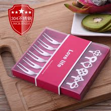 创意 304不锈钢水果叉六支礼盒装 水果签 蛋糕叉 甜品叉 包邮