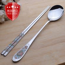 包邮 韩国进口韩式304不锈钢勺筷套装 实心扁筷子 长柄搅拌勺子