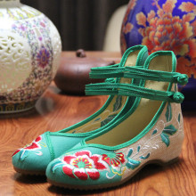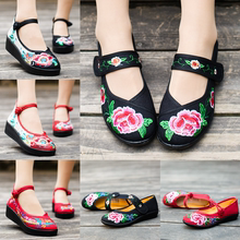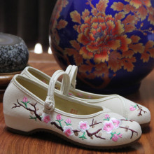 春秋季老北京民族风布鞋高跟女鞋坡跟绣花鞋布鞋厚底平底女单鞋子