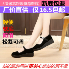 正品舒适厚底老北京布鞋女单鞋黑色高跟布鞋工作鞋跳舞上班鞋坡跟
