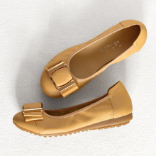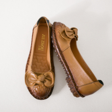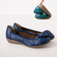 妈妈鞋单鞋女平底中老年舒适真皮软底浅口平跟圆头孕妇豆豆鞋女