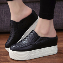 春秋季坡跟包头凉拖鞋内增高真皮女拖鞋松糕厚底高跟女鞋