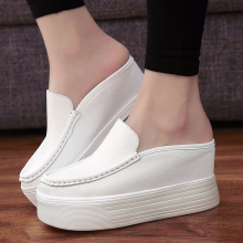 新款韩版真皮包头高跟拖鞋女厚底半拖内增高松糕拖鞋女鞋子春夏季