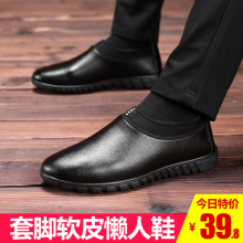 春季新款商务休闲鞋软面皮懒人鞋一脚蹬男鞋子英伦风透气男款套脚