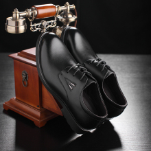男鞋春季黑色皮鞋男商务正装皮鞋圆头系带工作鞋休闲中年爸爸鞋潮