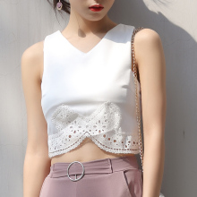 打底背心女夏 百搭性感V领漏肚脐宽肩带无袖T恤 高腰短款露脐上衣