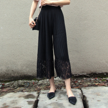 拼接蕾丝雪纺阔腿裤女夏高腰宽松显瘦百搭百褶九分裤休闲度假裙裤