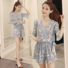 2017夏装新款韩版高腰显瘦宽松短袖荷叶边连体裤女装修身印花短裤