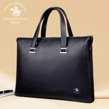 圣大保罗polo 男包手提包横款真皮男斜跨 头层小牛皮商务公文包