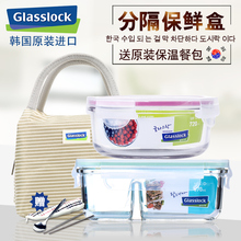 韩国进口glasslock带分隔玻璃保鲜盒 微波炉饭盒分格便当盒玻璃碗