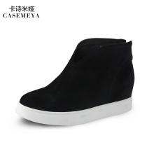 卡诗米娅2015秋季新品真皮翻牛皮平底内增高休闲鞋短靴爆款