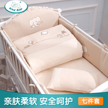kindbear婴儿床上用品套件秋冬床品新生儿针织七件套透气宝宝床围