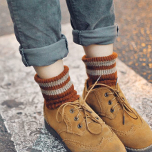 秋冬复古粗毛线毛圈袜子女加厚保暖翻边羊毛袜中筒堆堆韩国短靴袜
