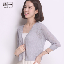 2016夏季新品桑蚕丝 针织开衫女薄款空调衫 短款修身外套披肩外搭