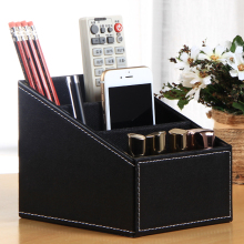 皮革遥控器收纳盒 办公桌面文具收纳 化妆品收纳杂物收纳盒木