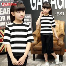 FCNUHAI夏装2017新款童装中大童套装宝宝儿童条纹衫阔腿裤两件套