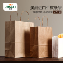 牛皮纸手提袋烘焙食品包装袋星巴克纸袋外卖打包袋购物袋子50只装