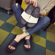 简约韩版坡跟厚底拖鞋女夏时尚一字拖凉鞋防滑松糕高跟沙滩鞋外穿