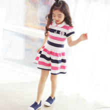 女童连衣裙童装夏装中大童儿童运动休闲条纹学院女宝宝纯棉裙子夏