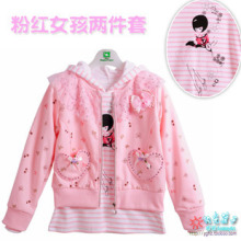 新款粉红女孩女童春秋长袖T恤外套两件套装儿童春装开衫外套 2165