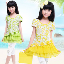 女童夏装新款短袖上衣裙连衣裙蕾丝韩版中大童公主裙表演裙子1326